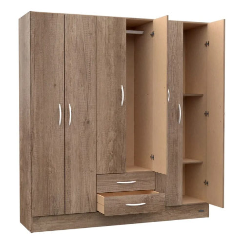 Su interior se distribuye de manera funcional, combinando cajones inferiores amplios para prendas dobladas o accesorios con barrales superiores para colgar ropa larga o corta. Además, los estantes internos te permiten acomodar zapatos, textiles o cajas organizadoras sin desorden.